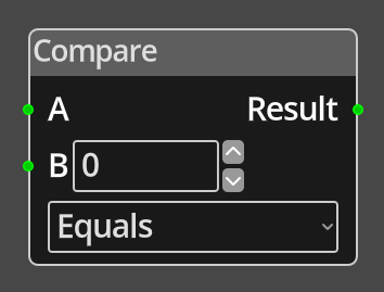 The Compare Node performs a comparison between two input values and