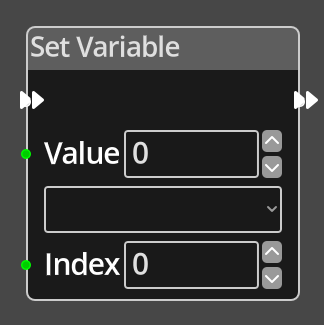 - A constant integer value to assign to the chosen variable. If the port is connected to another node, this option will become unavailable, the node will use the value provided on the input port.