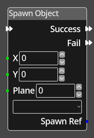 If the spawn operation succeeds, the Spawn Ref port will provide a reference to the spawned object for further modification or recording in a variable. If the spawn fails, this port value is undefined and should not be used.