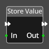 This node is very useful to optimise the execution of logic. Under normal conditions, whenever a node requests the value on any of its input ports, the logic will be executed on the node that connects to that port, and any nodes that connect to that node, and so on. This can be expensive if the value is used multiple times, especially if it doesn't change. So putting a Store Value Node in place ensures that the calculation only happens once, and the resulting value is reused.
